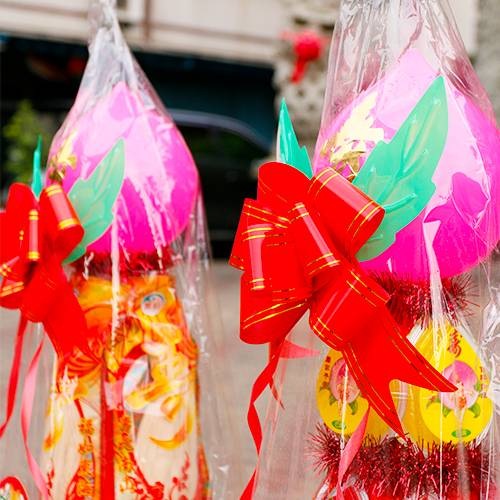 2本產品以「對」為單位,內容物食品可任選「麵條、壽麵、關廟麵」「果凍、鳳梨餅、桃酥、煎餅、方塊酥、鳳梨酥、沙其瑪、米果、菜脯餅、爆米花」我們會跟客人溝通後才開始製作