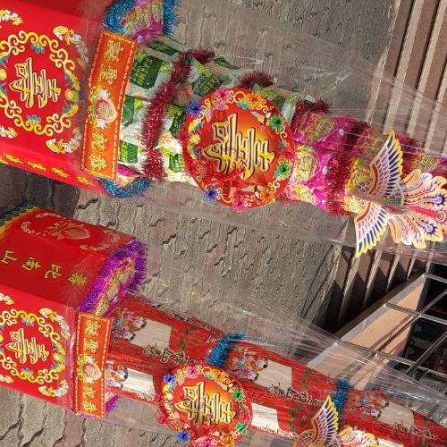2本產品以「對」為單位,內容物食品可任選「麵條、壽麵、關廟麵」「果凍、鳳梨餅、桃酥、煎餅、方塊酥、鳳梨酥、沙其瑪、米果、菜脯餅、爆米花」我們會跟客人溝通後才開始製作