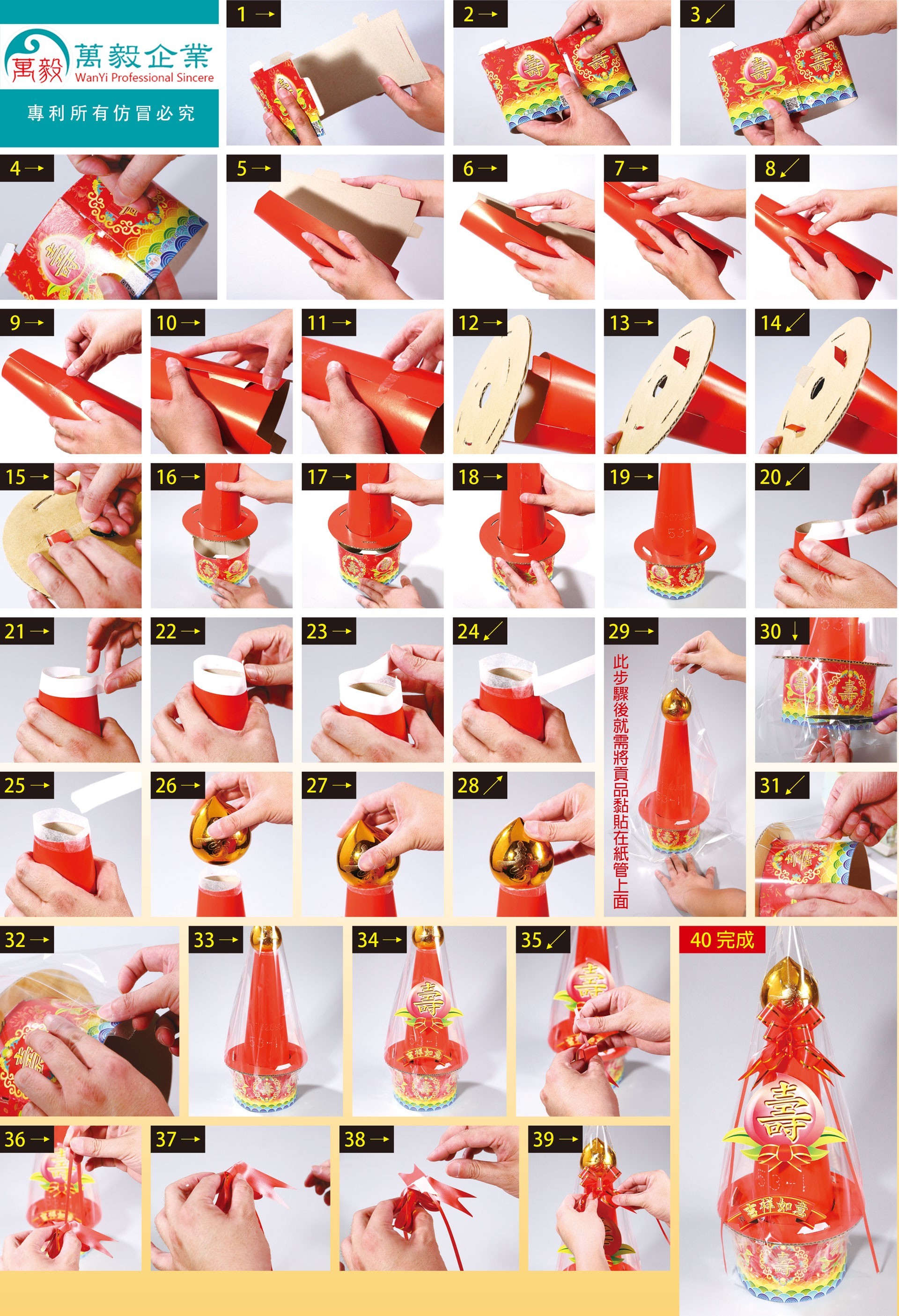 萬毅 小無燈壽桃塔 DIY組合步驟